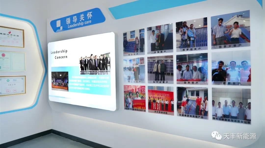 天豐新能源企業文化展廳,以 色彩”與“科技”為核心理念,展示著天豐產品的過硬資質,安裝時的精雕細琢,可謂一步一“景”,一景一“藝”,處處體現天豐新能源的匠心出品與精湛工藝,科技感與現代感融合,正是天豐新能源帶給客戶的佳體驗。