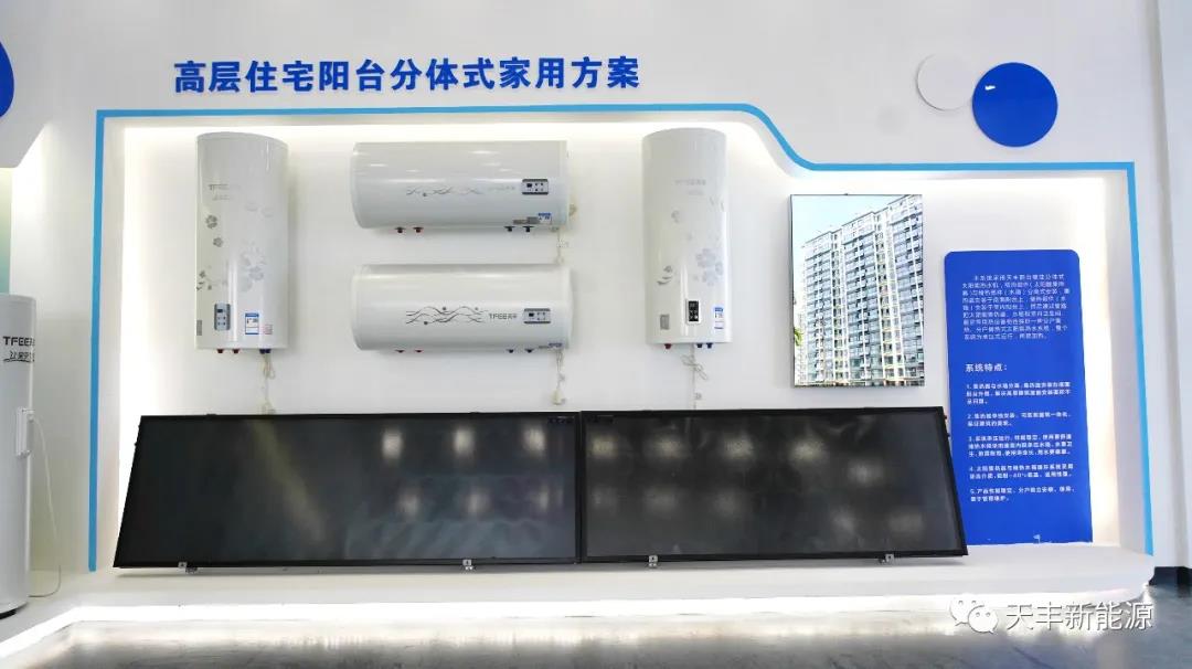 從“煤改清潔能源”到“碳達(dá)峰碳中和”,天豐也一直在為打贏藍(lán)天保衛(wèi)戰(zhàn)助力,除了在戶式、樓盤配套、大型集熱工程等市場(chǎng)發(fā)力之外,也在不斷探究光熱應(yīng)用的新領(lǐng)域。在2019年,推出天豐太陽(yáng)能采暖專用機(jī),末端可搭配空氣源熱泵、電熱鍋爐、生物質(zhì)顆粒爐作為輔助熱源,以達(dá)到采暖的目的,當(dāng)陽(yáng)光不足時(shí)自動(dòng)啟動(dòng)輔助能源部分,保證24小時(shí)提供恒溫供暖。