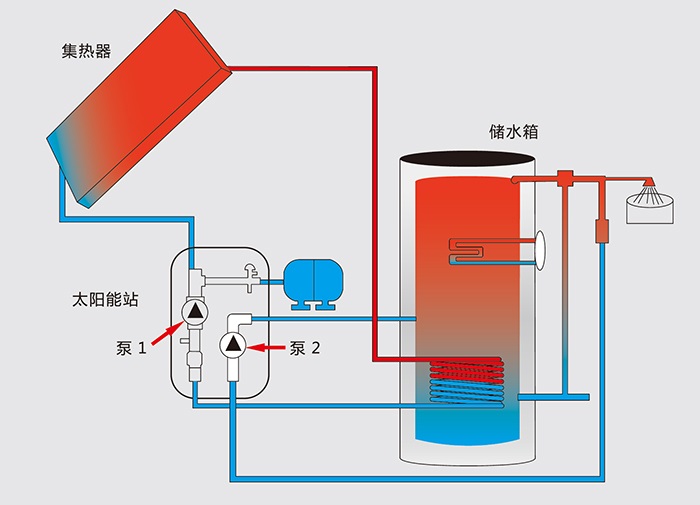 太陽集熱器與儲熱水箱循環系統采用防凍介質,能耐-40°C低溫,適用性強;